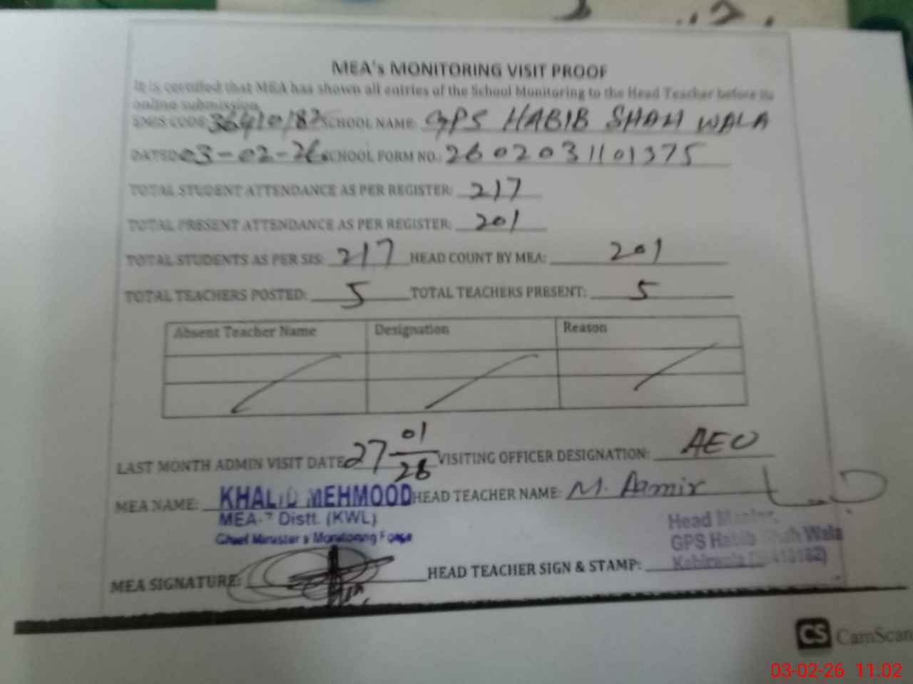 | EMIS Code: 36410182 | Name of School: GPS HABIB SHAH WALA, KABIRWALA | |||