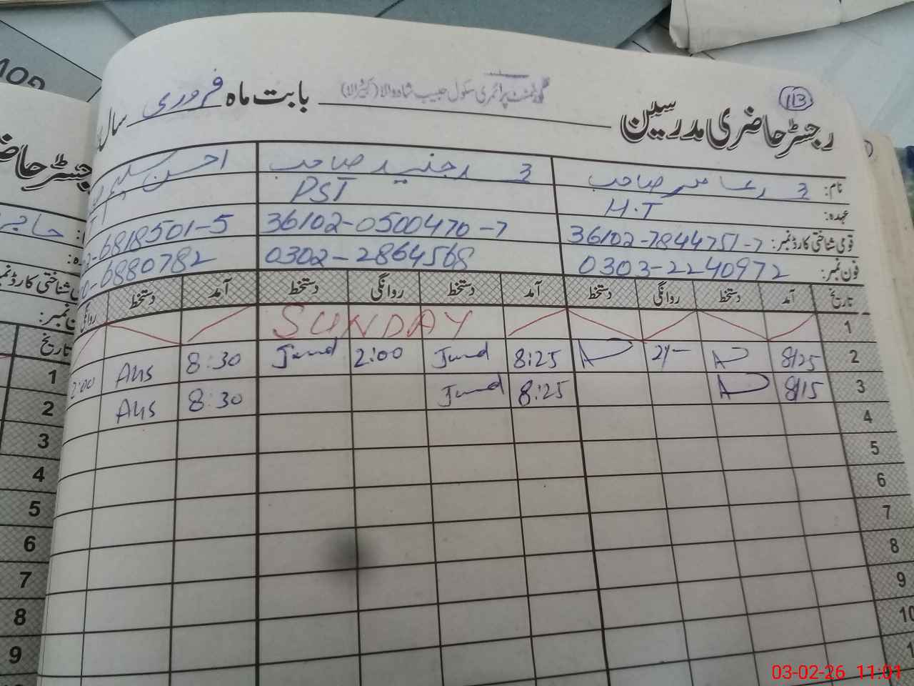 | Name: Mu**** Aa**** Designation: (School Headmaster's/Headmistress's) PST Phone/Cell Number: 03**** |