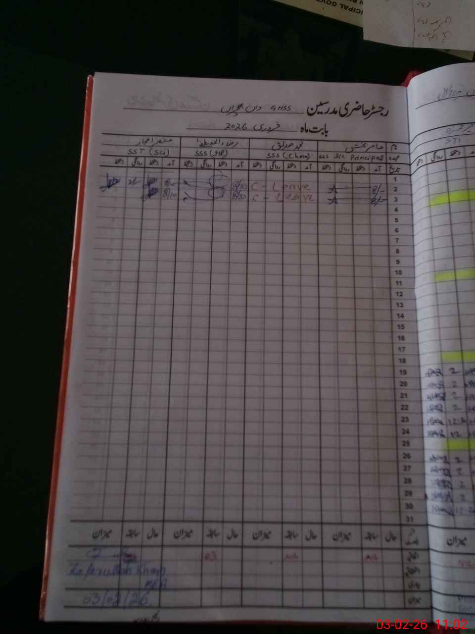 | CNIC | Full Name | Designation | R/C | Absence During Last Calender Month |