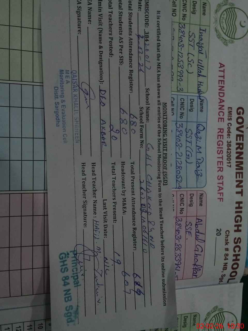 | EMIS Code: 38420017 | Name of School: GHS CHAK NO.84 NB | |||