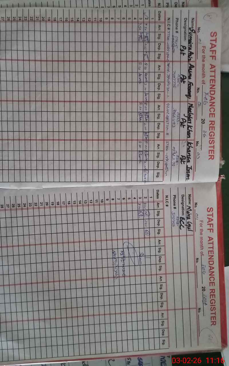 | Name: Su**** Az**** Designation: (School Headmaster's/Headmistress's) Headmistress Phone/Cell Number: 03**** |