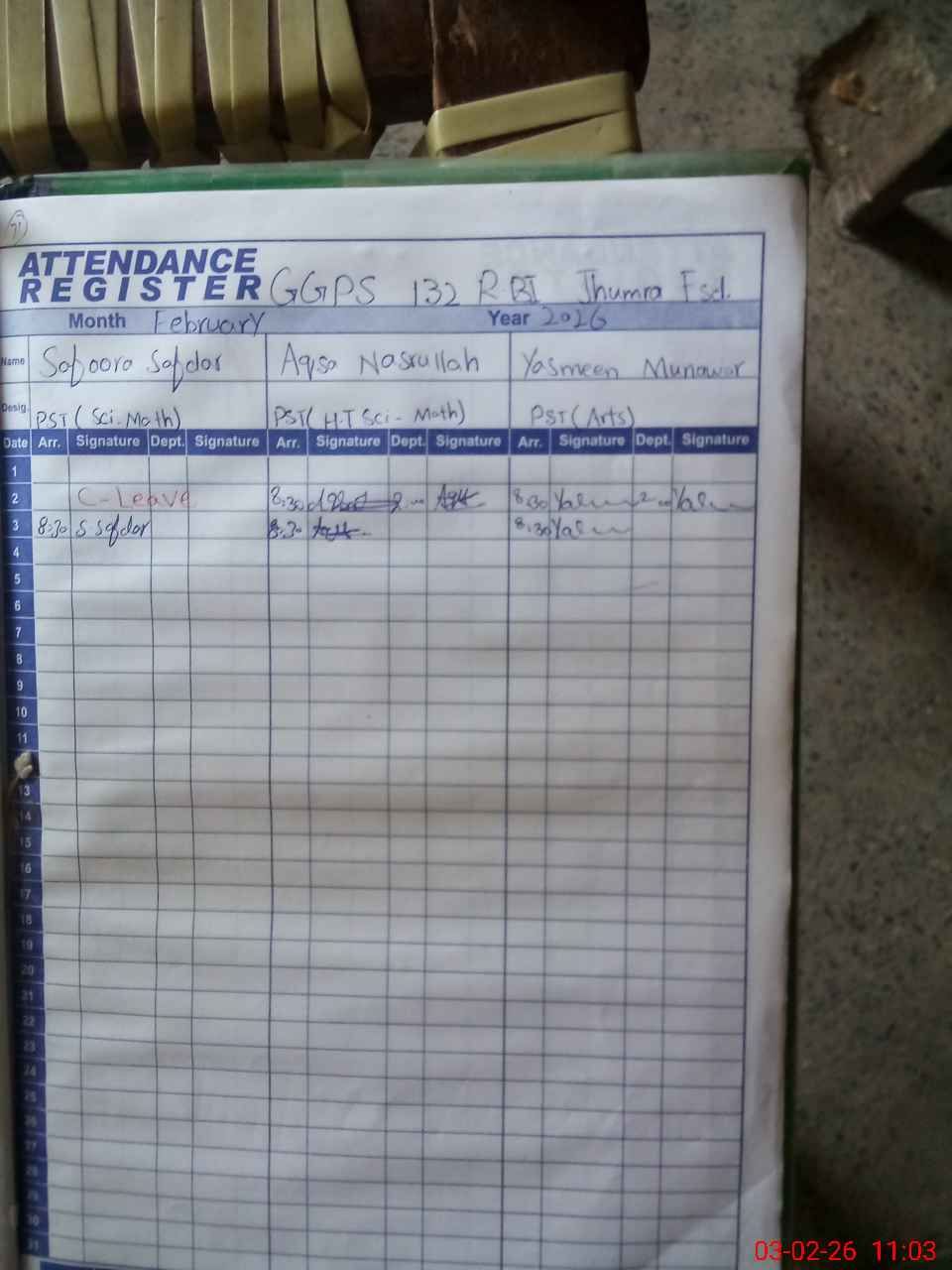 | CNIC | Full Name | Designation | R/C | Absence During Last Calender Month |