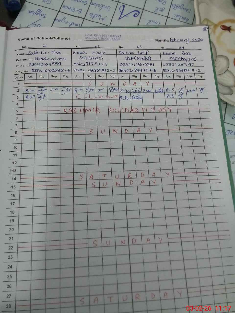 | Name: Za**** Designation: (School Headmaster's/Headmistress's) Head Mistress Phone/Cell Number: 03**** |