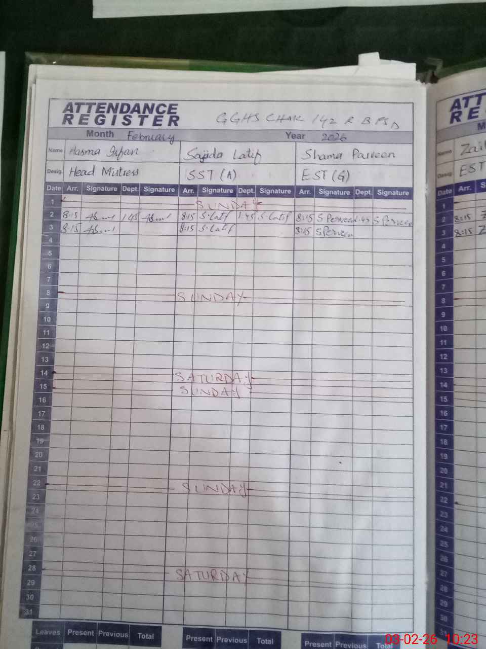 | Monitoring Date: 03-02-2026 | Start Time: 03-02-2026 09:32 AM | End Time: 03-02-2026 10:34 AM | Name of MEA: MU**** SH**** MU**** | |