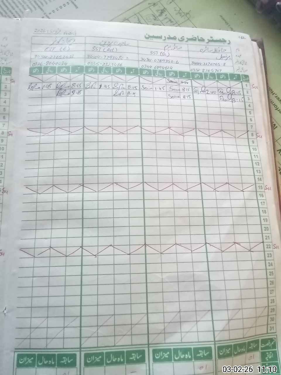 | 34**** | Sa**** Sa**** | SSE Computer Science | Contract | 0 | 0 | 0 | 0 | 0 | 0 | 0 | 0 | 0 | Absent (Un-Authorized) |