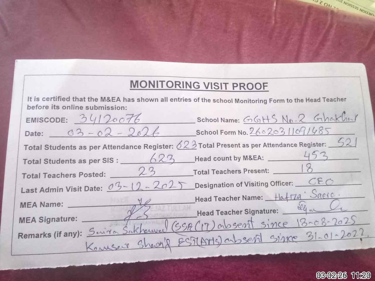 | EMIS Code: 34120076 | Name of School: GGHS GHAKHAR NO.2 | |||