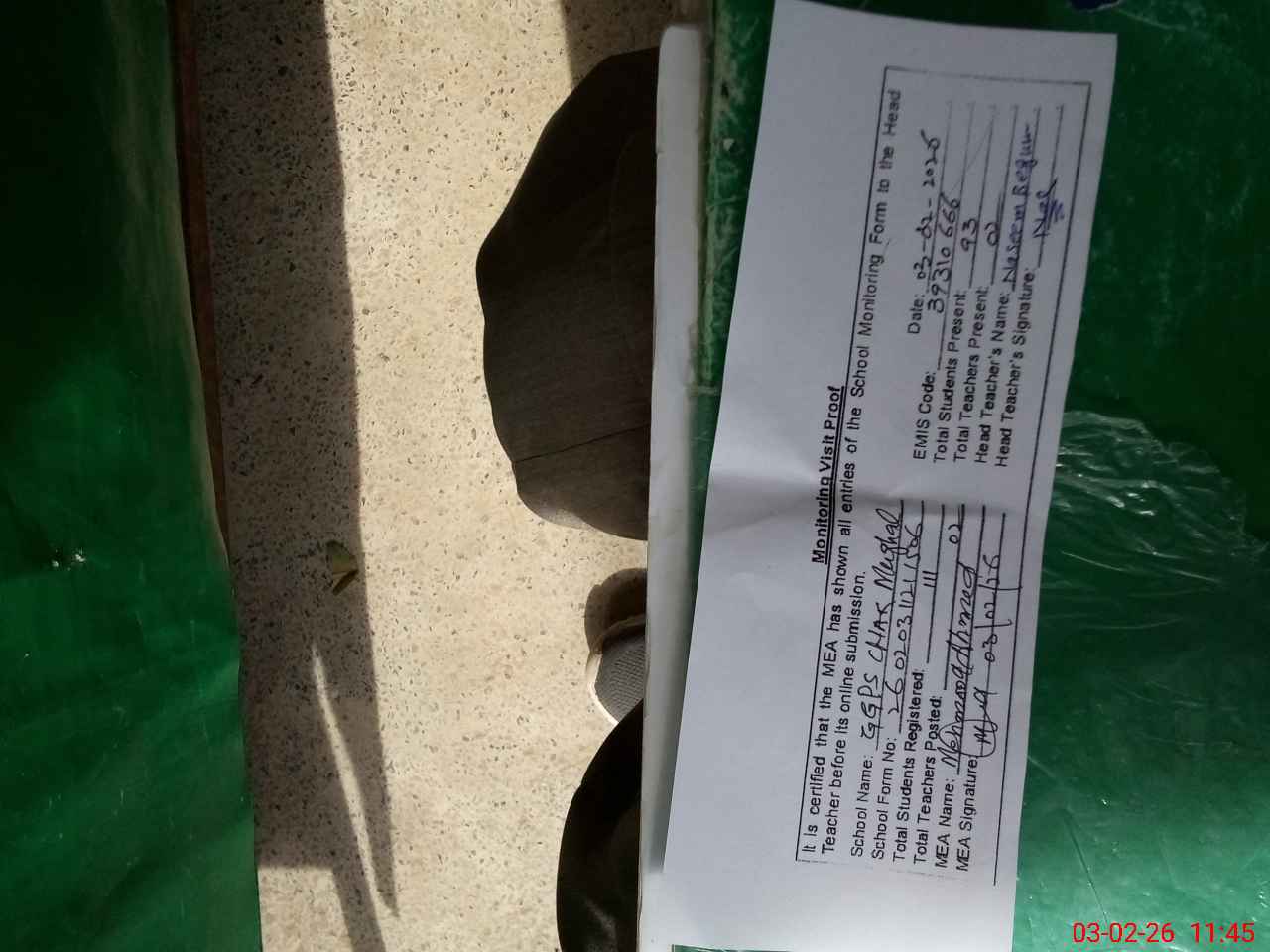 | Attendance Register | Head Teacher | MEA with School | Visit Proof |