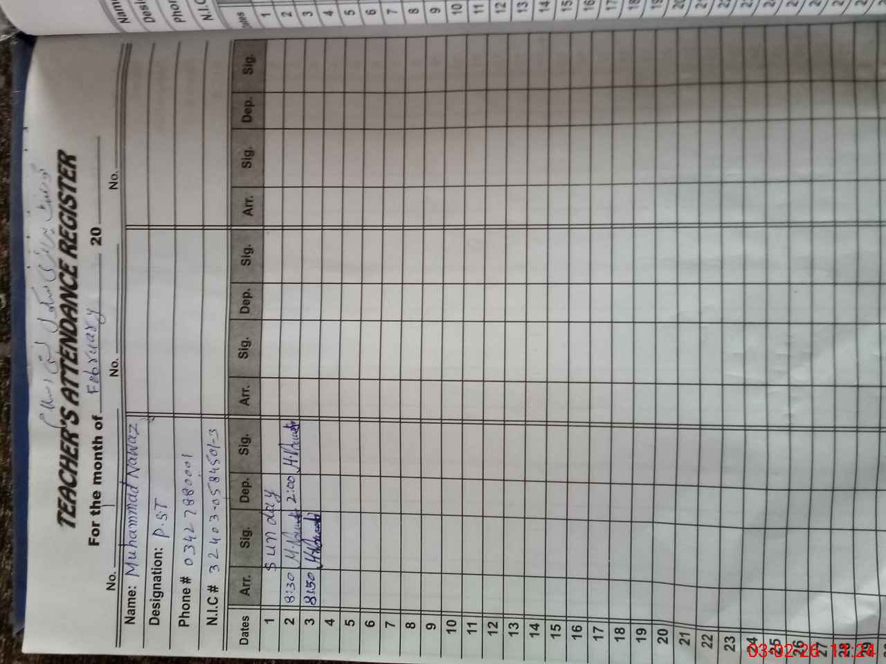 | Name: Wa**** Ab**** Designation: (School Headmaster's/Headmistress's) PST Phone/Cell Number: 03**** |