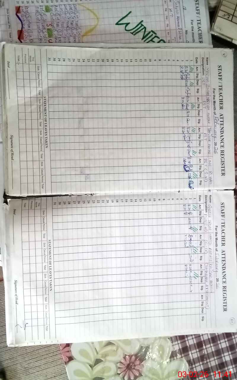 | No. of Students Present - Female | 0 | 0 | 0 | 0 | 0 | 0 | 0 | 0 | 0 | 0 | 0 | 0 | 0 | |||