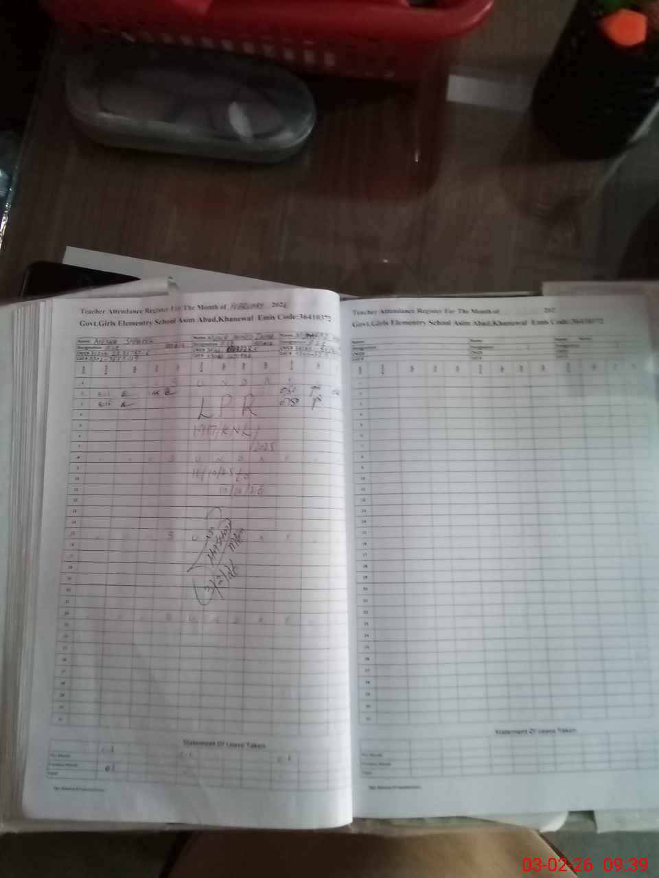 | CNIC | Full Name | Designation | R/C | Absence During Last Calender Month |