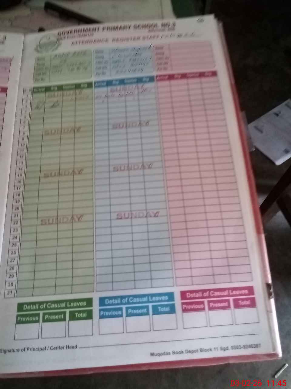 | CNIC | Full Name | Designation | R/C | Absence During Last Calender Month |