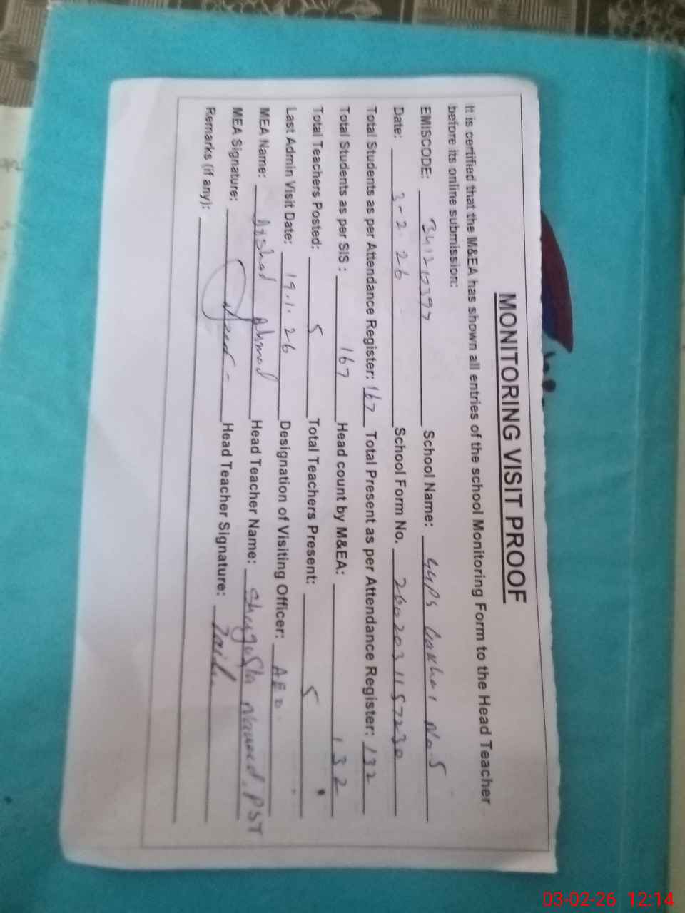| EMIS Code: 34120397 | Name of School: GGPS GHAKHAR NO.5 | |||