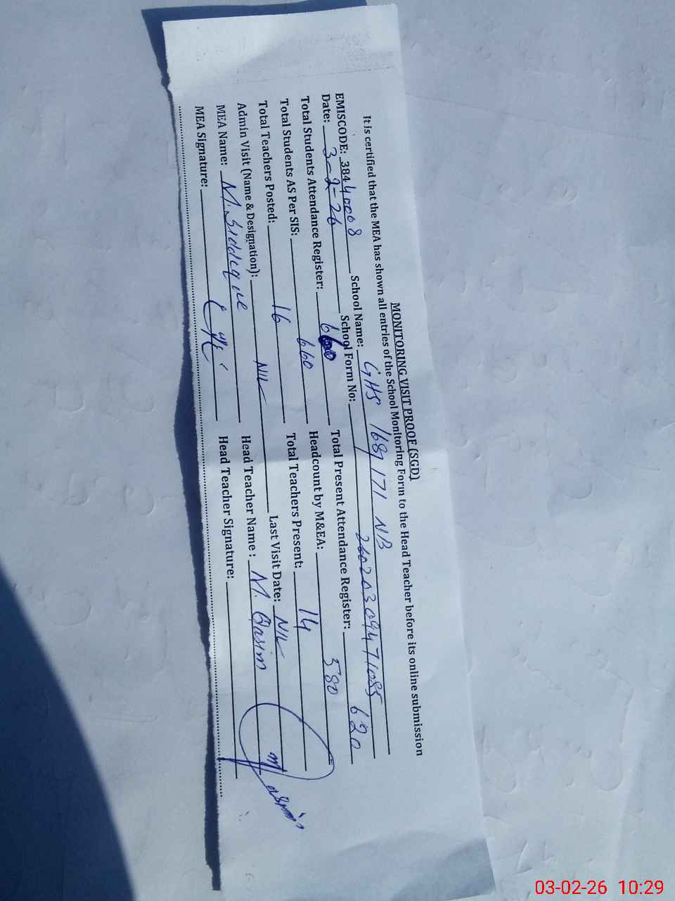 | EMIS Code: 38440008 | Name of School: GHS CHAK NO.168/171 NB | |||