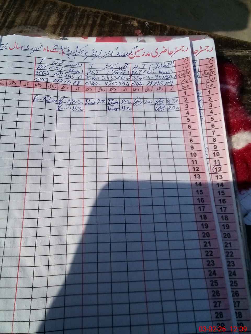 | Name: AN**** Designation: (School Headmaster's/Headmistress's) ESE Sci-math Phone/Cell Number: 03**** |