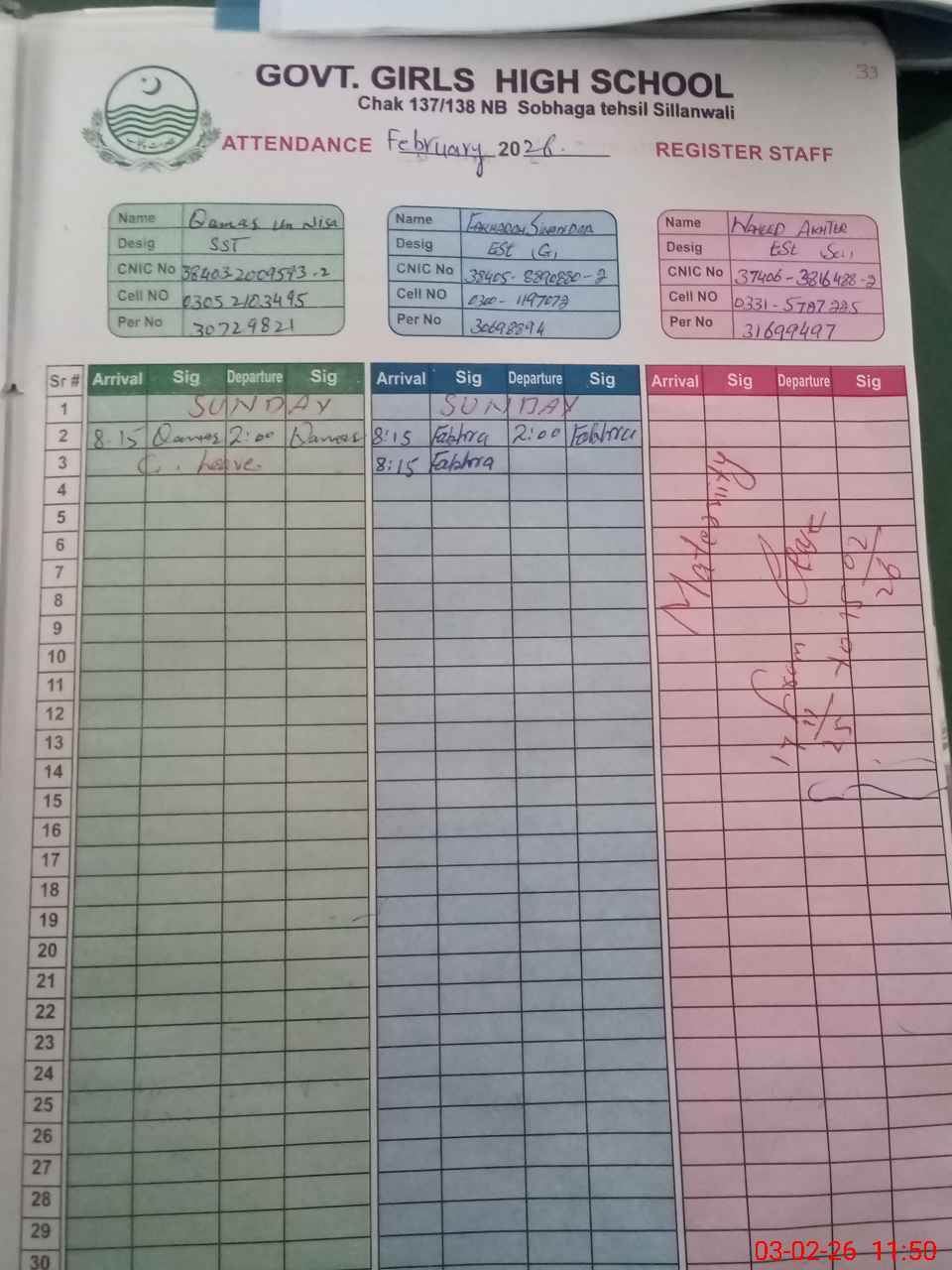 | Name: Fa**** Si**** Designation: (School Headmaster's/Headmistress's) Est G Phone/Cell Number: 03**** |