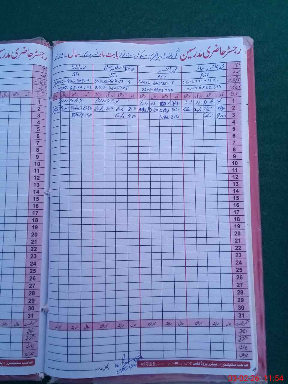 | Name: MAm**** Ni**** Designation: (School Headmaster's/Headmistress's) PST Phone/Cell Number: 03**** |