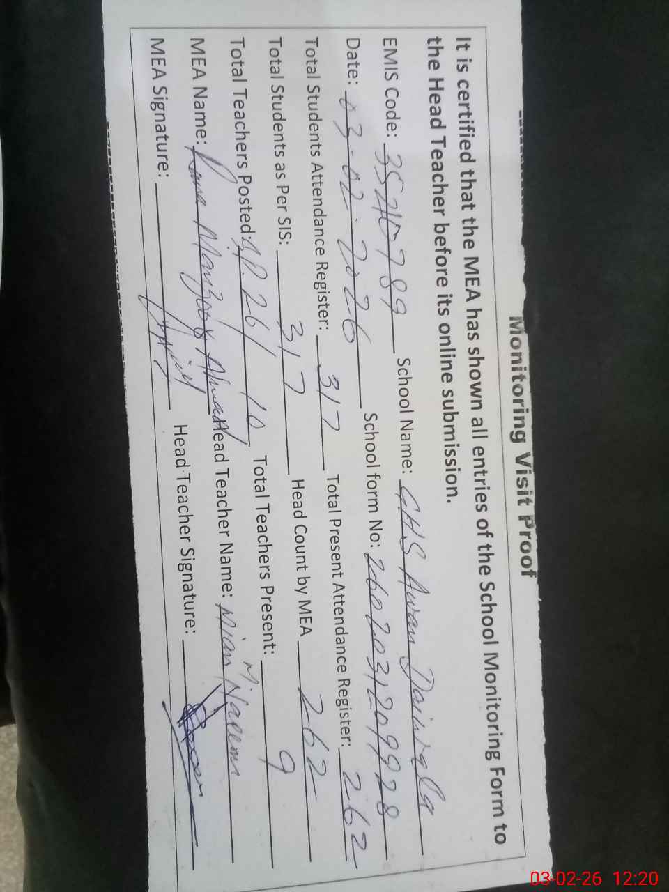 | EMIS Code: 35210789 | Name of School: GHS AWAN DHAI WALA(Newly upgraded) | |||
