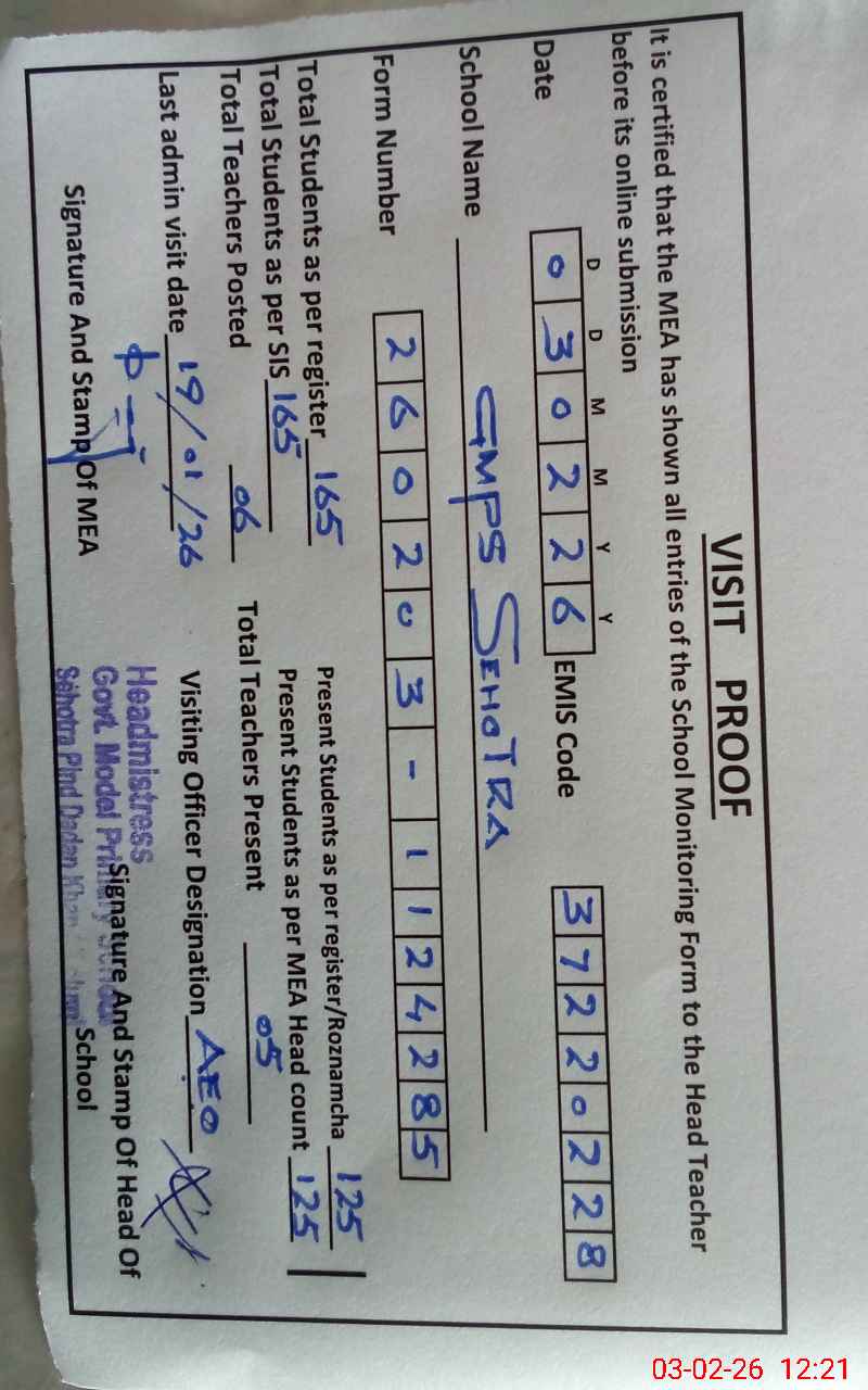 | EMIS Code: 37220228 | Name of School: GMPS SEHOTRA | |||