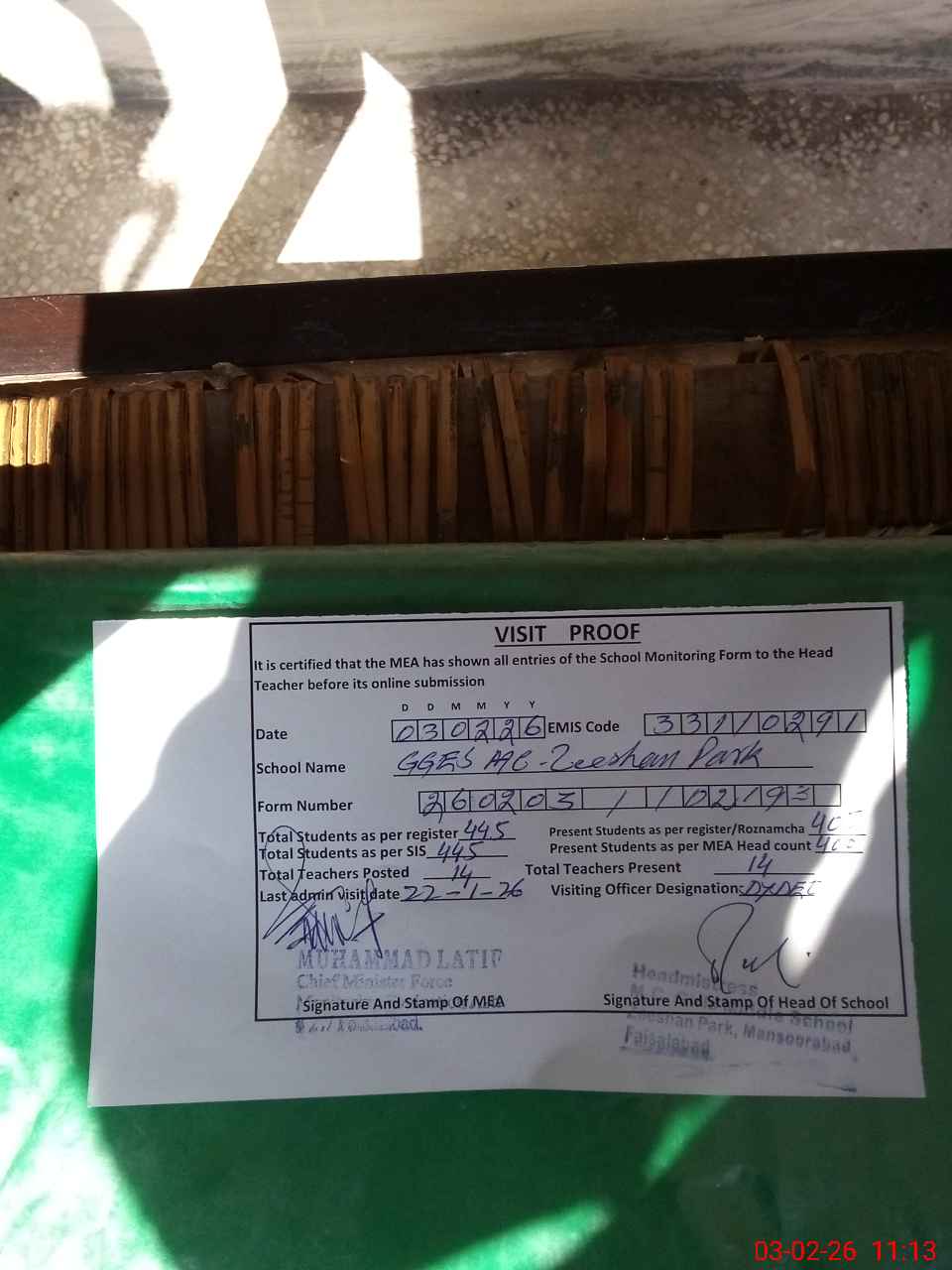 | EMIS Code: 33110291 | Name of School: GGES MC ZEESHAN PARK FSD | |||