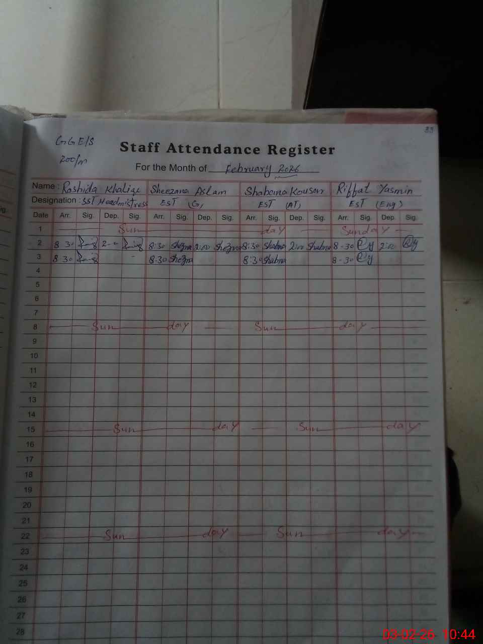 | No. of Students Present - Female | 0 | 14 | 25 | 23 | 28 | 23 | 15 | 12 | 22 | 22 | 202 | |||||