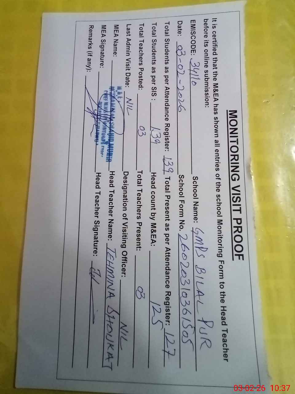 | EMIS Code: 34110356 | Name of School: GMPS BILAL PUR | |||