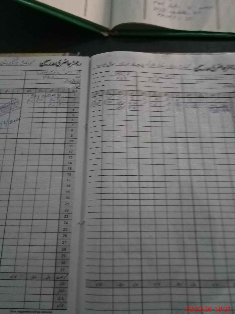| CNIC | Full Name | Designation | R/C | Absence During Last Calender Month |