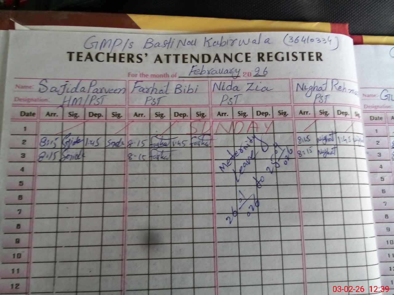 | Leave | Duty | Absent | Maternity | Medical | Ex- Pak |