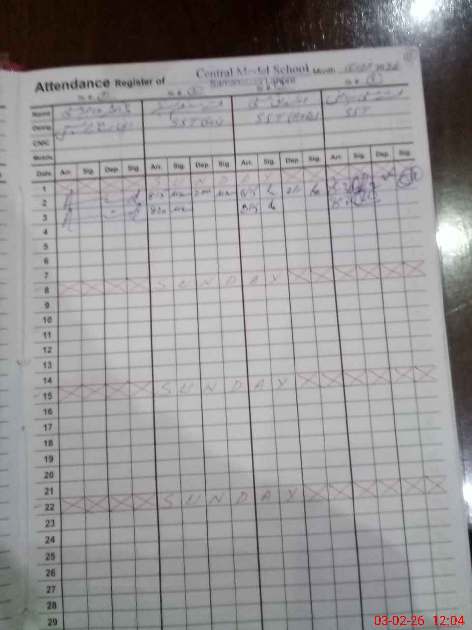 | CNIC | Full Name | Designation | R/C | Absence During Last Calender Month |