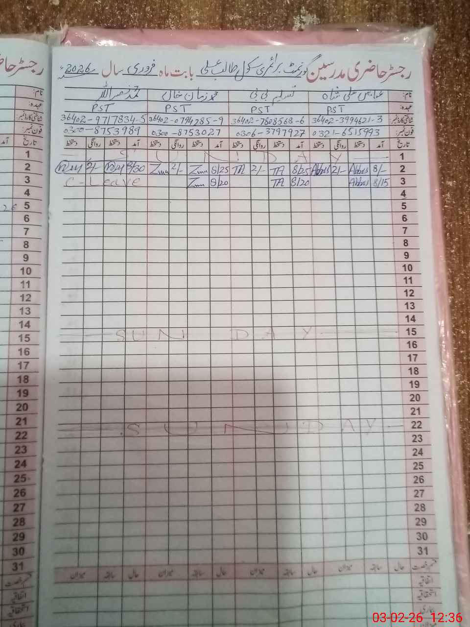 | Name: Ab**** Al**** Sh**** Designation: (School Headmaster's/Headmistress's) PST Phone/Cell Number: 03**** |