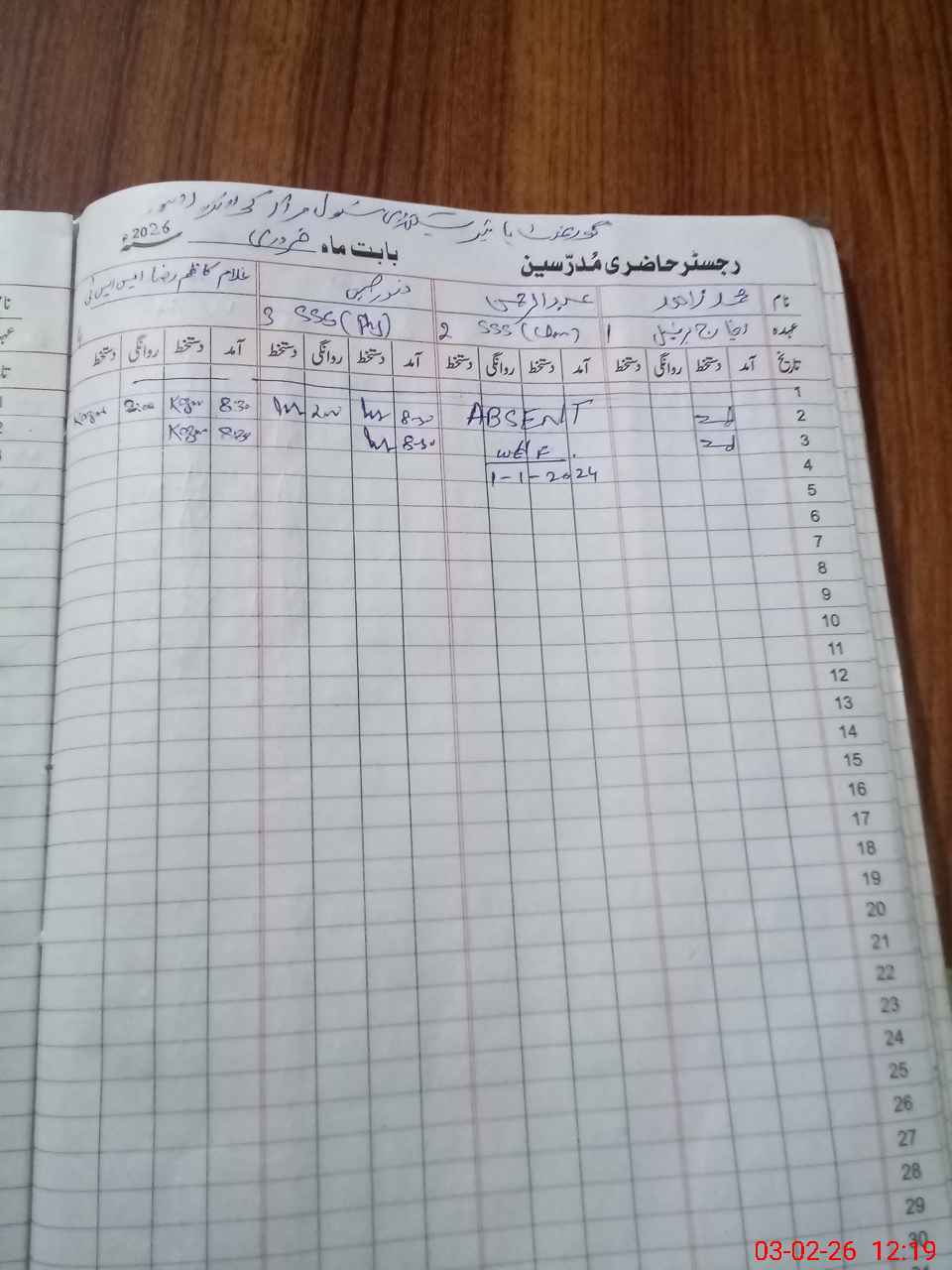 | CNIC | Full Name | Designation | R/C | Absence During Last Calender Month |