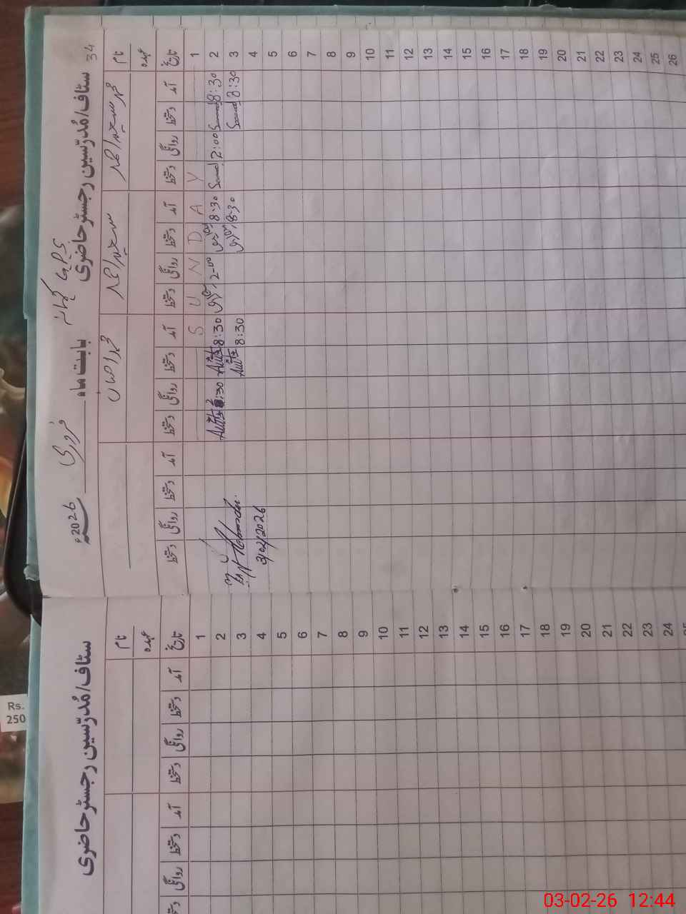 | CNIC | Full Name | Designation | R/C | Absence During Last Calender Month |