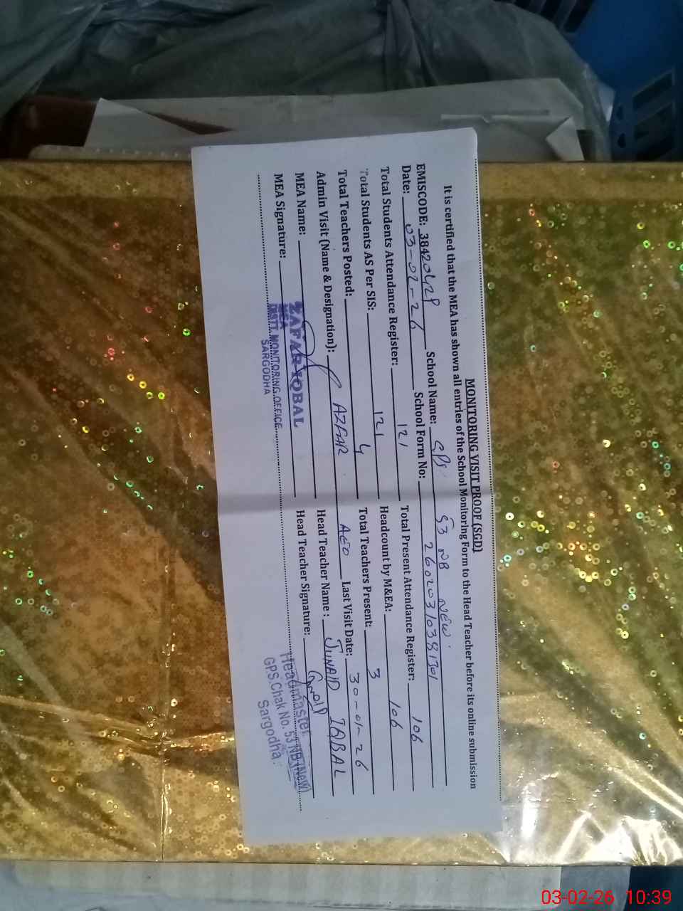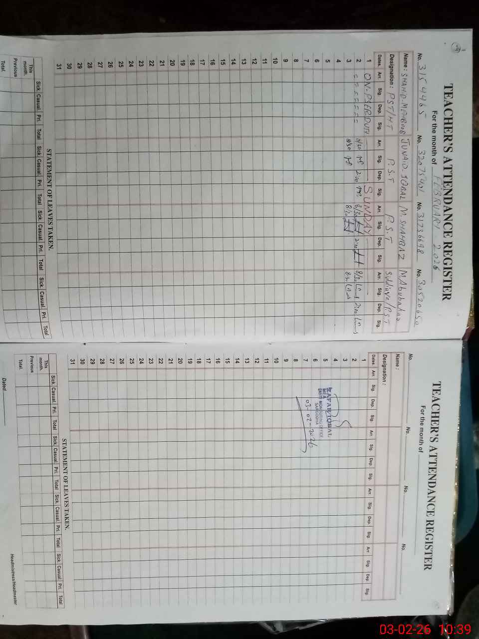 | Name: SH**** ME**** Designation: (School Headmaster's/Headmistress's) PST Phone/Cell Number: 03**** |