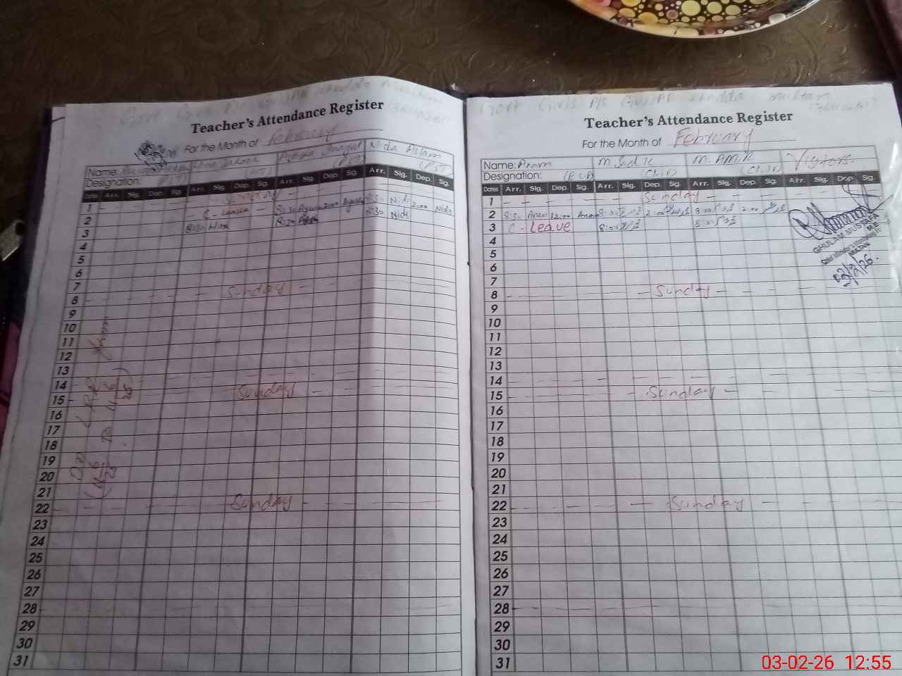 | CNIC | Full Name | Designation | R/C | Absence During Last Calender Month |