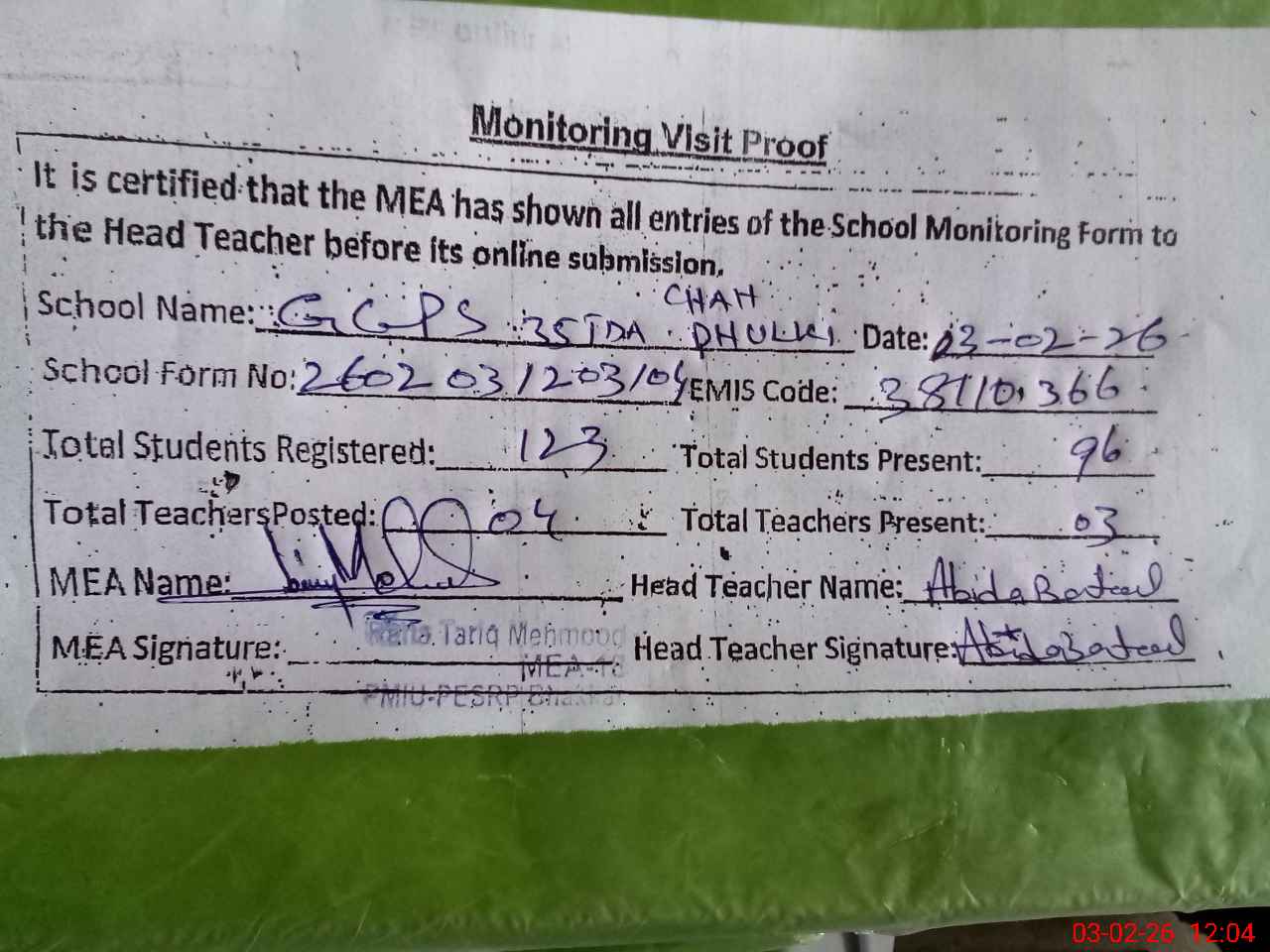 | EMIS Code: 38110366 | Name of School: GGPS CHAK NO.35/TDA CHAH PHULKI | |||
