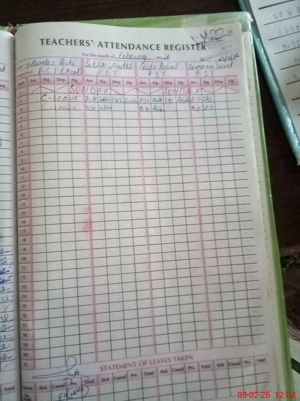 | Name: Mu**** Bi**** Designation: (School Headmaster's/Headmistress's) PST Phone/Cell Number: 03**** |