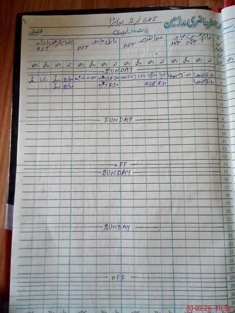 | CNIC | Full Name | Designation | R/C | Absence During Last Calender Month |
