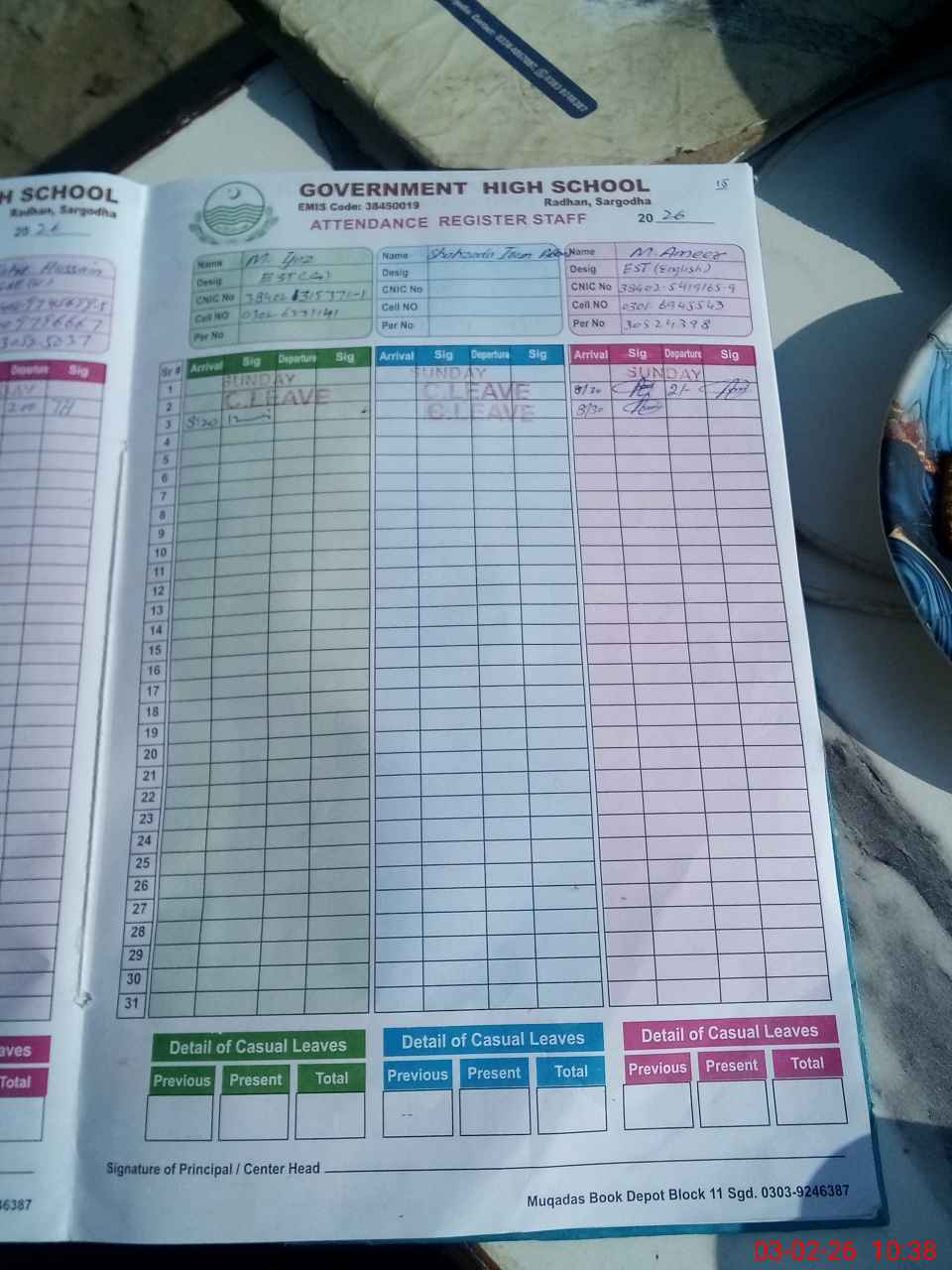 | Name: GH**** AL**** Designation: (School Headmaster's/Headmistress's) S S T / IN PRINCIPAL Phone/Cell Number: 03**** |