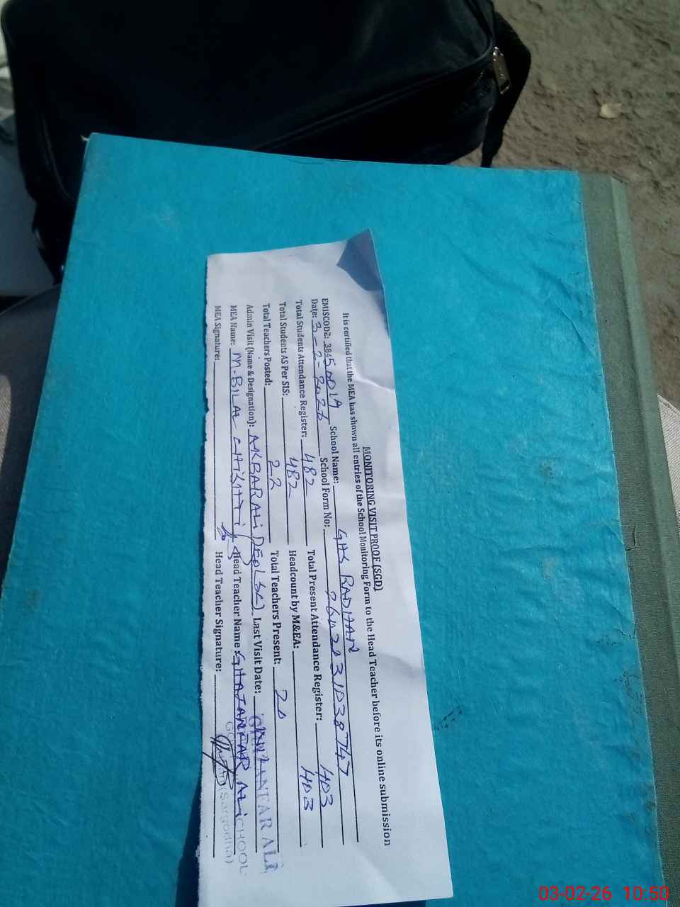 | EMIS Code: 38450019 | Name of School: GHS RADHAN | |||