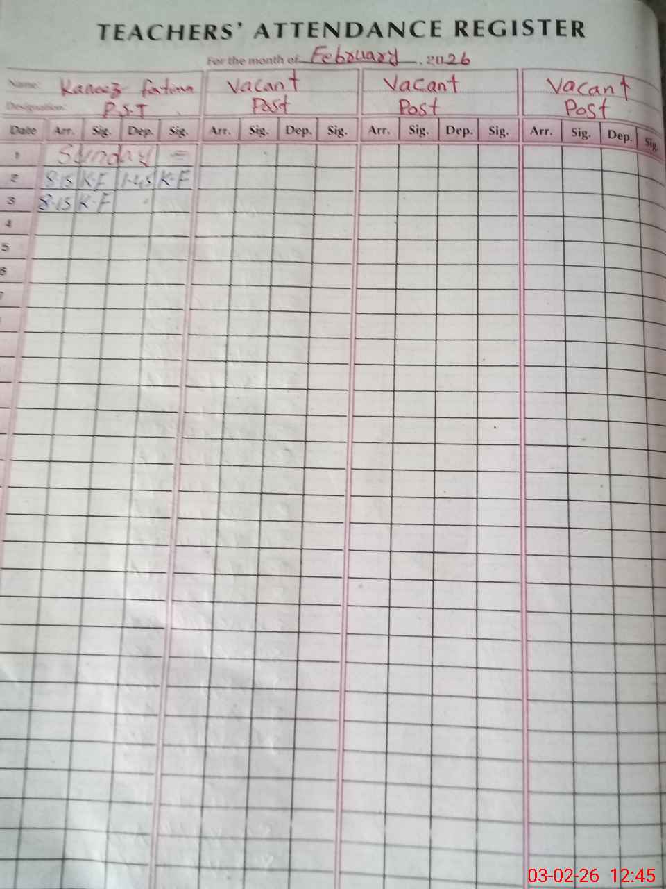 | Name: Ro**** As**** Designation: (School Headmaster's/Headmistress's) PST Phone/Cell Number: 03**** |