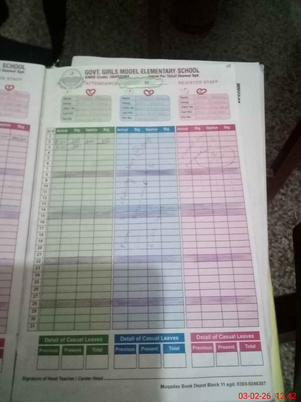 | Name: SA**** SU**** Designation: (School Headmaster's/Headmistress's) EST (MATH) Phone/Cell Number: 03**** |