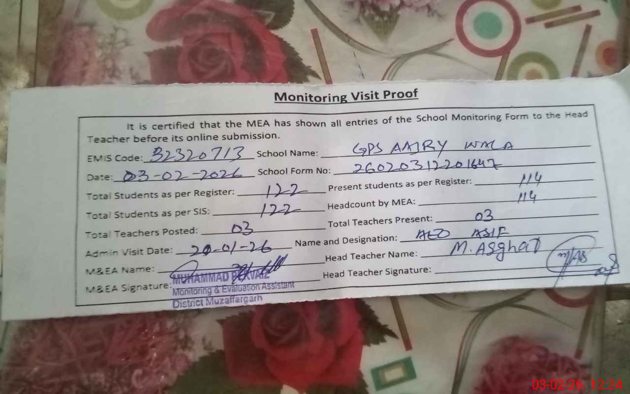 | EMIS Code: 32320713 | Name of School: GPS AAJRY WALA | |||