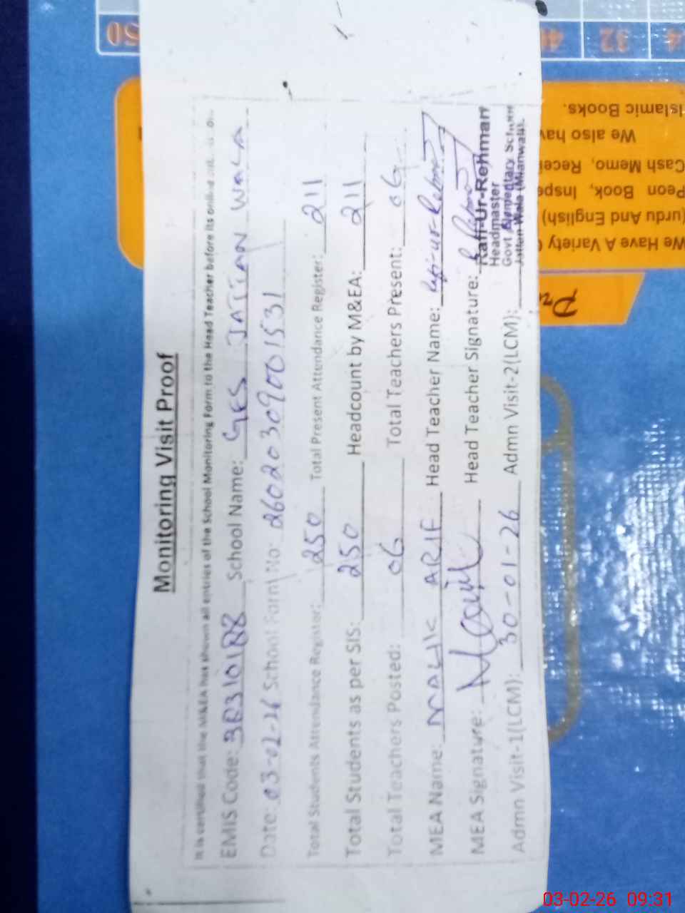 | EMIS Code: 38310188 | Name of School: GES JATTAN WALA | |||