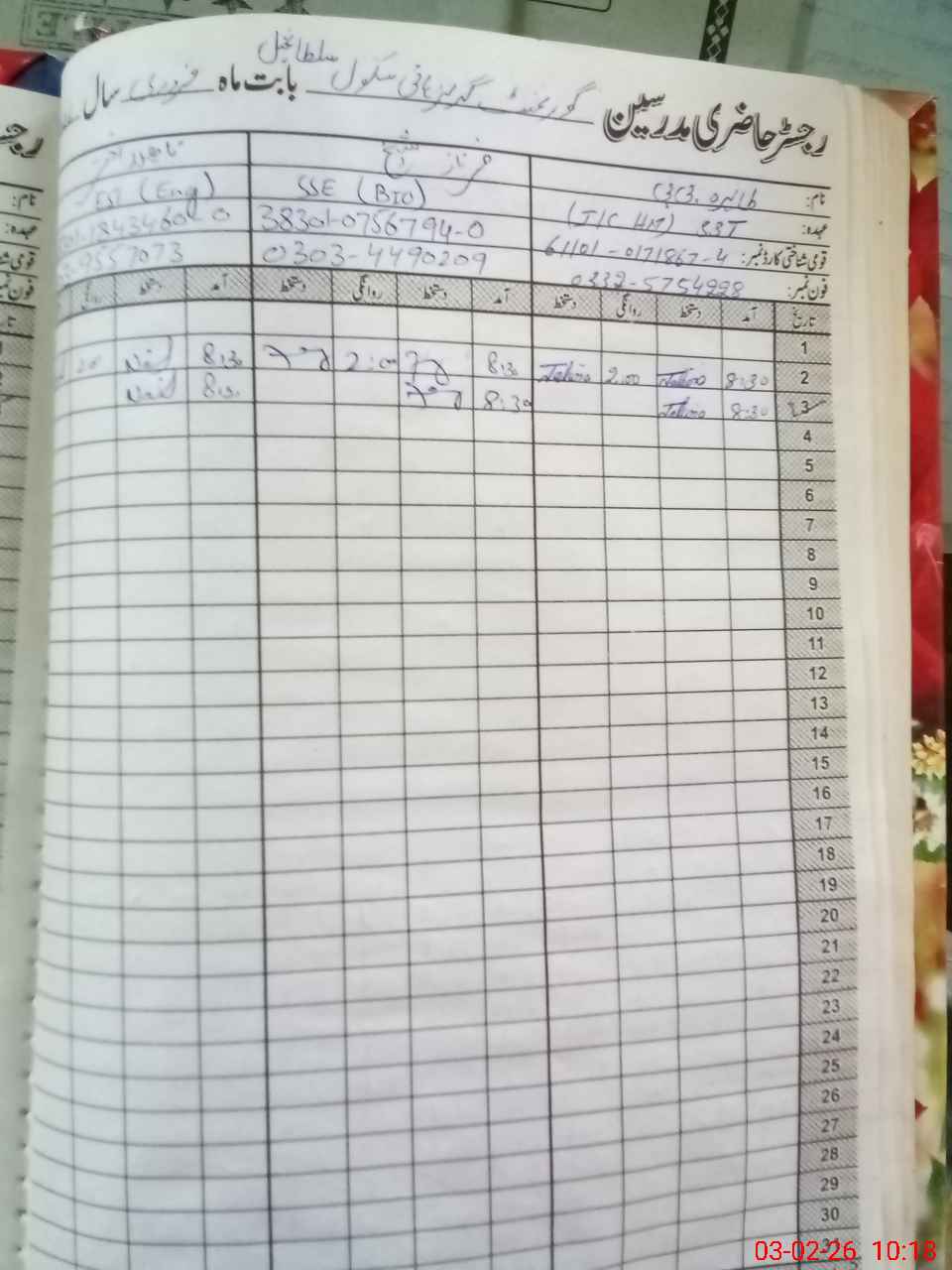 | Name: Ta**** Bi**** Designation: (School Headmaster's/Headmistress's) HEADMISTRESS Phone/Cell Number: 03**** |
