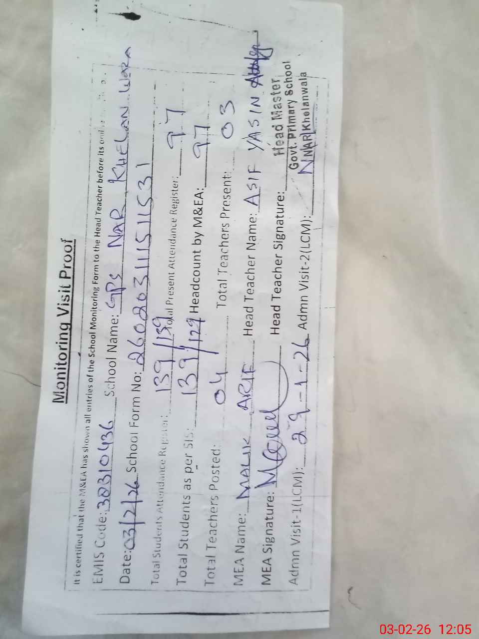 | EMIS Code: 38310436 | Name of School: GPS NAR KHELAN WALA | |||
