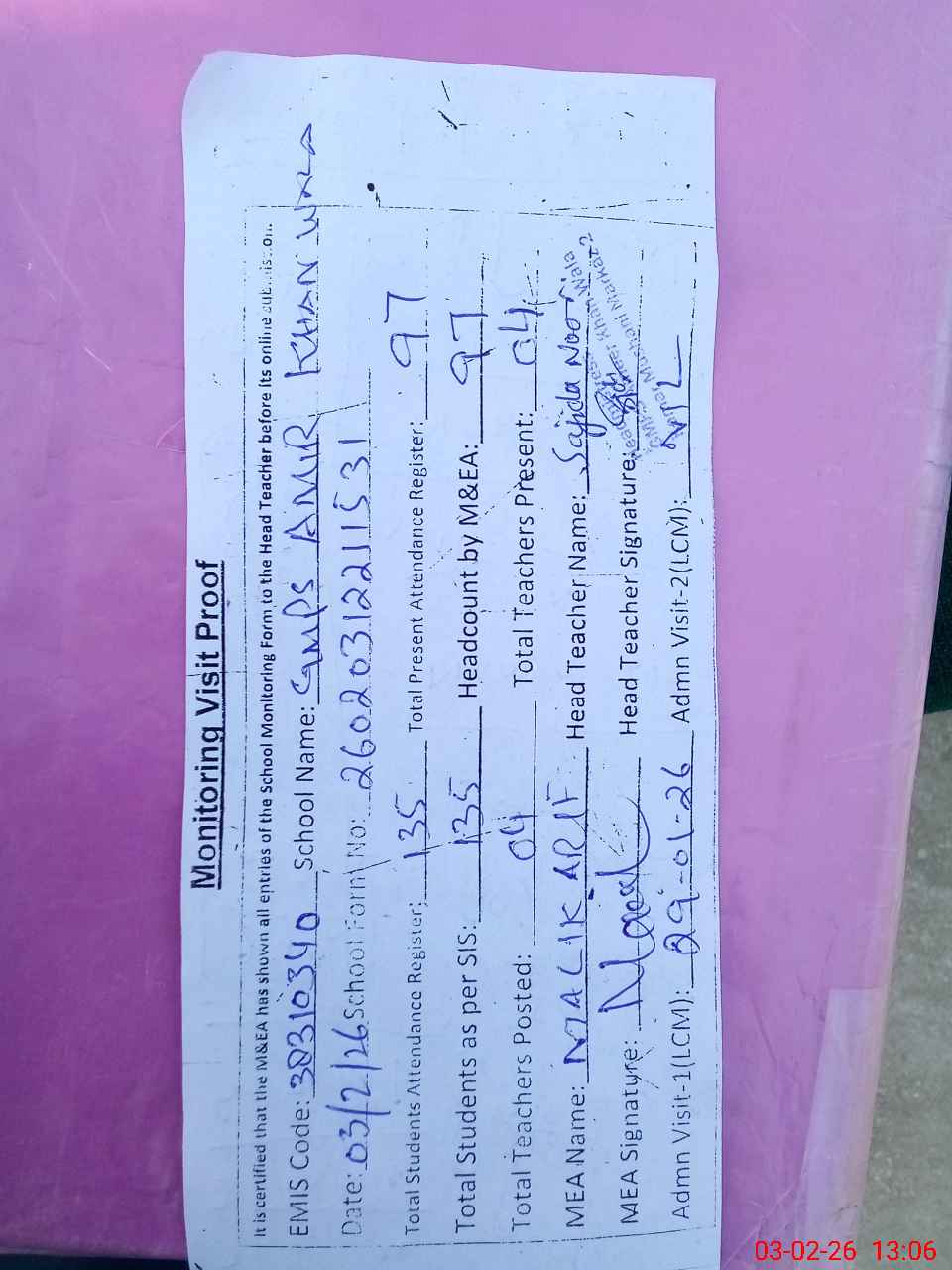 | EMIS Code: 38310340 | Name of School: GMPS AMIR KHAN WALA | |||