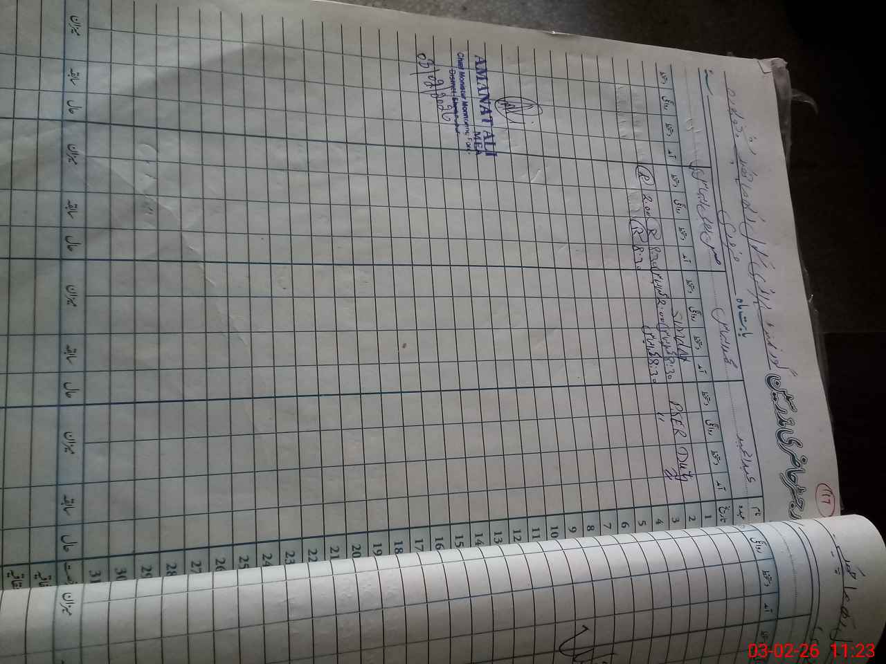 | CNIC | Full Name | Designation | R/C | Absence During Last Calender Month |