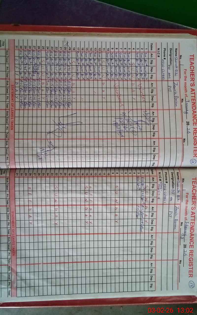 | Name: Sh**** Bi**** Designation: (School Headmaster's/Headmistress's) Headmaster Phone/Cell Number: 03**** |