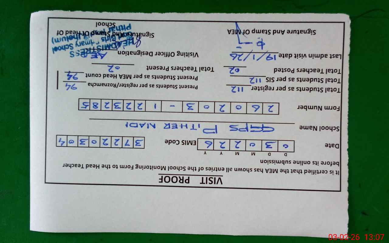 | Attendance Register | Head Teacher | MEA with School | Visit Proof |