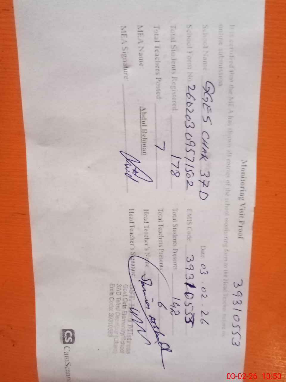 | EMIS Code: 39310553 | Name of School: GGES CHAK NO. 37/D | |||