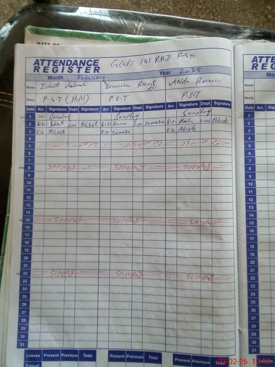 | CNIC | Full Name | Designation | R/C | Absence During Last Calender Month |